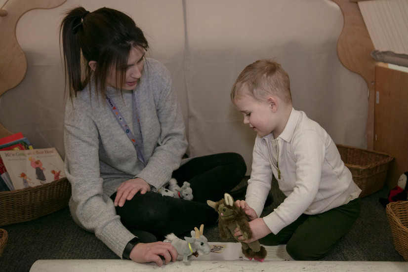 During December, we give children time and space to enjoy Christmas without too much noise or over stimulation. The rhythm of the day is just as important now as ever. We take time to notice small wonders together: crunchy grass, icy windows, warm soft lights, and cosy blankets. We tell stories, sing songs with actions and props, and create calm, happy moments. These experiences let